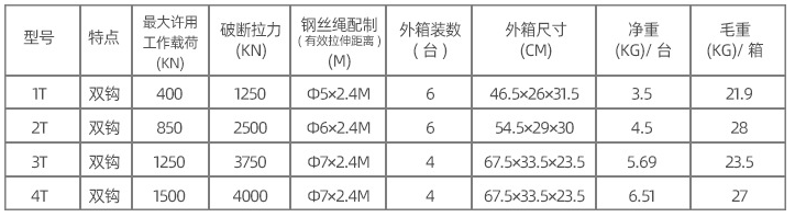 采用高強度鋼板,優(yōu)質(zhì)碳鋼的一體結(jié)構(gòu),搭配高密度齒輪,防逆轉(zhuǎn)設(shè)計理念碳鋼套壓制鋼絲繩安全系數(shù)大大提升。